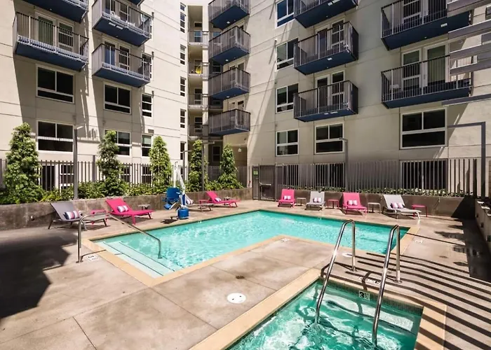 Dit appartement ligt in de Little Tokyo wijk en biedt de mogelijkheid om het Broad Contemporary Art Museum te bezoeken, dat op 9 minuten lopen verderop ligt. Dit appartement is op circa 600 meter van de OUE Skyspace LA en binnen 2 km van het Staples Center gelegen. Het duurt niet lang om het Gemeentehuis te bereiken, binnen slechts 13 loopminuten verderop.